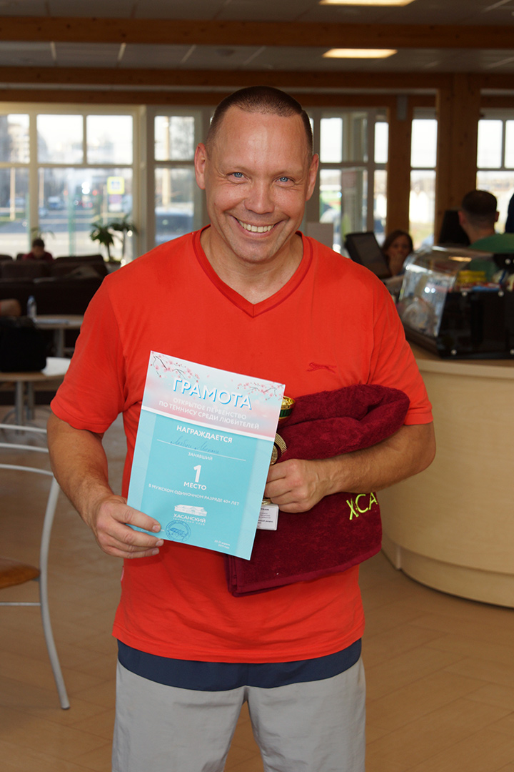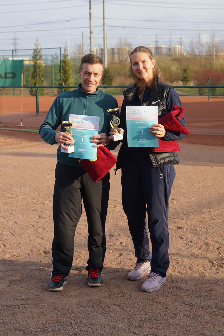 В воскресенье, 21 апреля, на грунтовых кортах теннисного клуба «Хасанский» прошли решающие игры очередного любительского первенства клуба. Эти турниры стали уже традиционными, проходящими 4 раза в год. Отрадно, что в соревнованиях регулярно принимают участие многие сильнейшие любители города. Так у мужчин в категории «до 40 лет» победил неоднократный чемпион города Александр Быховский. Победитель в категории «40+» – Михаил Алябин. У женщин победила уже не в первый раз Екатерина Новикова. В миксте Татьяна Тютюнова пригласила в партнеры победителя множества любительских и ветеранских турниров Виктора Жванько. И они уверенно заняли первое место! В мужском парном разряде собрался ровный состав, все матчи проходили в упорной борьбе, а победили Константин Буханов и Никита Кощеев.