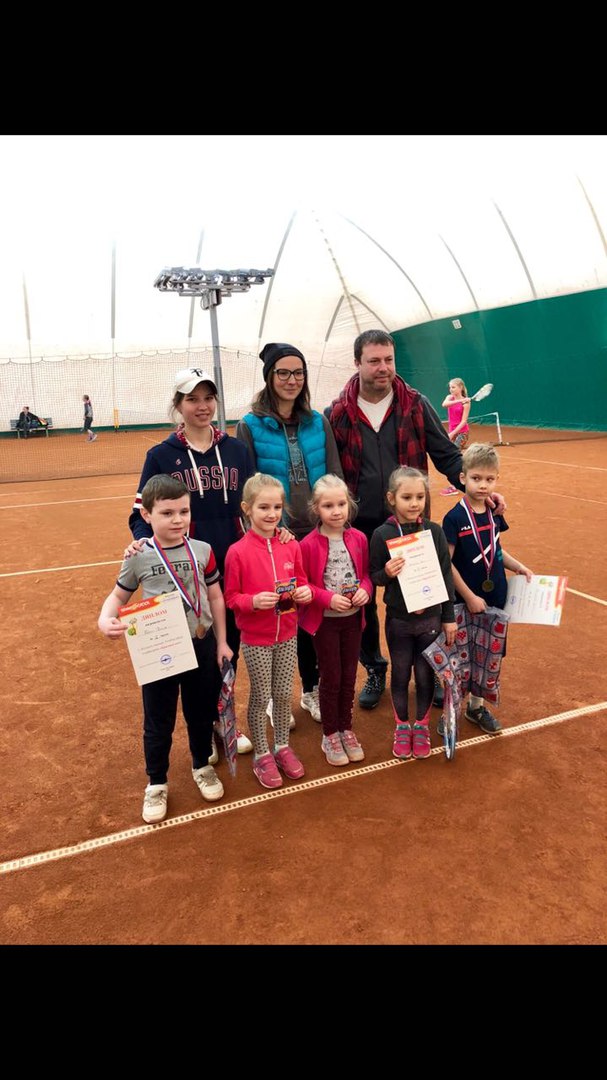 В субботу, 17 марта, на грунтовых теннисных кортах нашего клуба детская школа тенниса TENNISCHOOL (старший тренер – Тая Рыдзевская) провела однодневный детский теннисный турнир. Соревнования проводились по международным правилам для детей младшего возраста сразу в трех категориях (Красный мяч, Оранжевый мяч и Желтый мяч). Играли ученики разных тренеров теннисного клуба «Хасанский». Результаты: Красный мяч. 1. Дегтярев Никита (тр. Лапиков Игорь) 2. Родин Дамир (тр. Родин Рустам) 3. Коноплева Полина (тр.Рыдзевская Тая) Оранжевый мяч. 1.Чудиновских Алена (тр. Родин Рустам) 2. Догаев Никита (тр. Медведев Дмитрий) 3. Догаева Вероника (тр. Медведев Дмитрий) Желтый мяч. 1. Мхитарян Аида (тр. Рыдзевская Тая) 2. Геворкян Заринэ (тр. Рыдзевская Тая) 3. Садов Артем (тр. Лапиков Игорь)